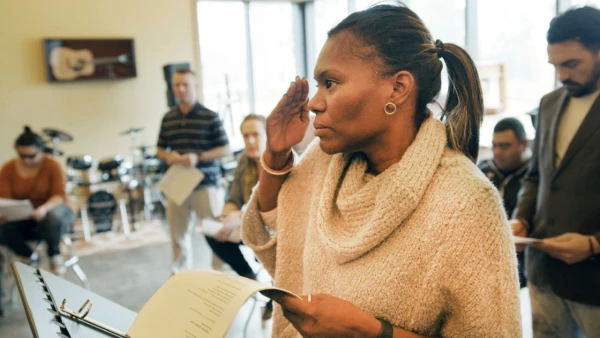 Theo chân các cựu chiến binh và quân nhân đang tại ngũ từ nhiều hoàn cảnh khác nhau cùng nhau chiến đấu với chấn thương thông qua văn bản trong hội thảo nghệ thuật do USO tài trợ tại Bệnh viện Quân y Quốc gia Walter Reed.