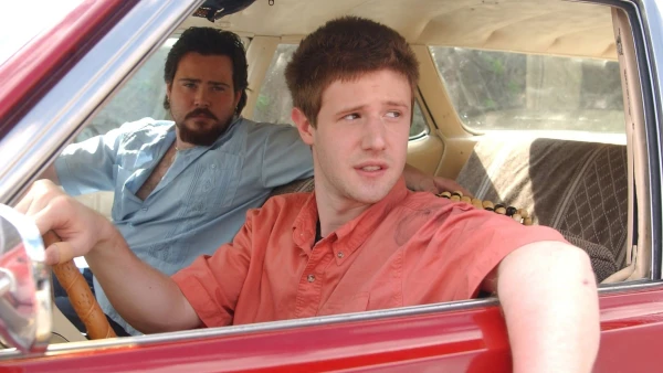 Two guys and a female hitchhiker are terrorized by a monstrous looking man driving a giant monster truck.